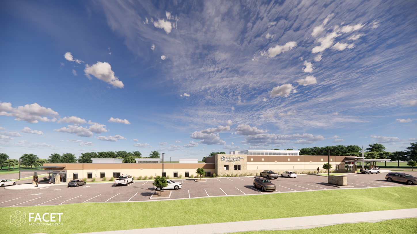 need to expand emergency services to the Belton / Salado area just south of their main campus. This new 22,000 SF ground up facility includes a new free standing emergency department with an adjacent primary care medical office building that will service the surrounding areas with 15 exam rooms. The design of the facility takes inspiration from the existing hospital facility in order to create & extend a